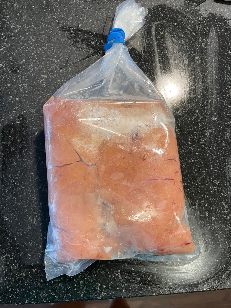 そんなある日の夜ご飯はこの間メイン州でゲットしたたらこ(なんかでかい)を使った、たらこスパゲッティにしようと思った。