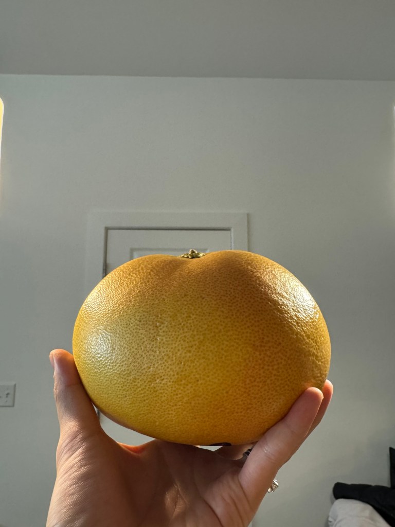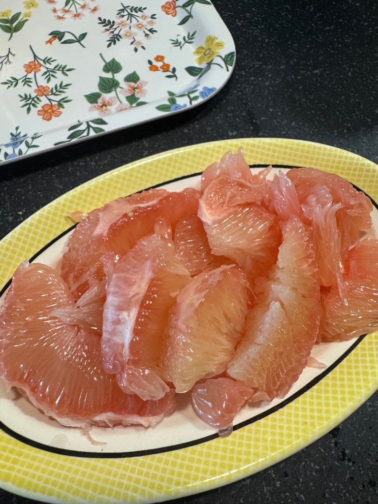またある日は、義父がスーパーで子供の頭ほどの大きさの特大のグレープフルーツらしきものをどこからともなく見つけ出しカートに入れていた。グレープフルーツにはつわりの時に大変お世話になったけれど、普段は5軍くらいな立ち位置なので、新鮮であった。しかも、これが美味しい!果実たっぷり、甘い。グレープフルーツの苦味がよい感じに消え、わたし好みの味であった。調べてみたらポメロというフルーツらしい。グレープフルーツとオレンジを交配させた品種だとか。ビタミンCが豊富で免疫力アップに効果あり、この季節にはぴったりかも。
