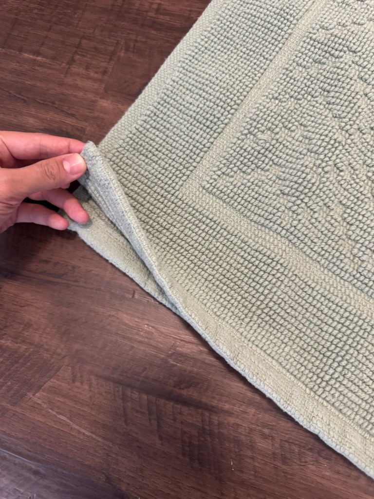 そして、サイズ大きめ、生地薄い、我が家のバスマット最適解へと辿り着いたのである。Nicole Millerというロゴの手書きのサインが縦に長くて何と書いてあるかよくわからない、TJMaxxでよくみるブランドのやつである。