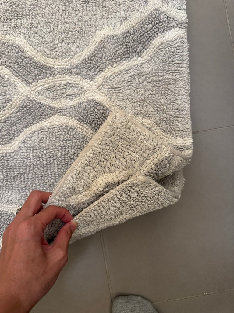 バスマットが教えてくれた。2回失敗して、3回目でようやく理想のバスマットに辿り着いたのである。とはいえ、至ってシンプルなお買い物ジャーニーであった。1回目は、サイズ。店頭で見たときは妥当なサイズだと思ったのに、実際に家に帰ってホクホクと置いてみたら全然サイズ小さいじゃん!現象が発生した。(残念ながら写真はない)少しでも動くと水滴がバスマット外に飛び散るので、シャワー後、豪快にタオルで自分の身体を拭きたいところ、チマチマとライブ会場で自分の陣地内でタオルをぶんまわすような居心地の悪さを味わわなければならなかった。