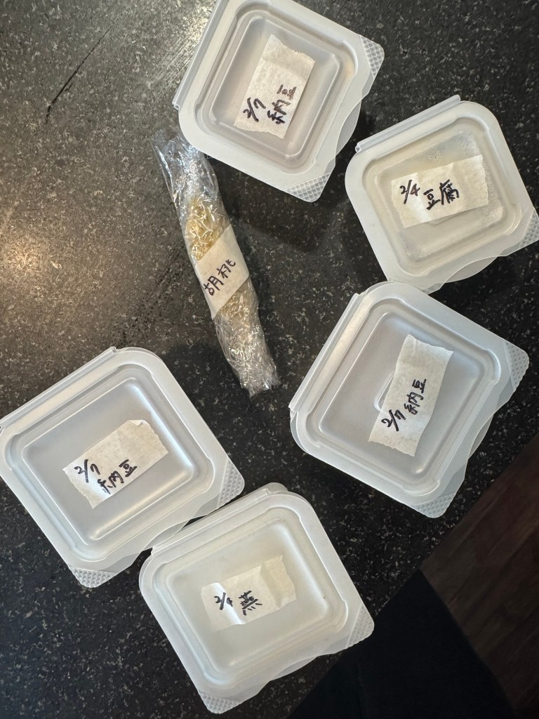 くるみは、ええっと、こんな字だったよな、ああ〜桃に形が似てるからカァ。とうふは豆が腐る、なっとうは豆を納めるか。納豆、確かに藁みたいのに包んでるけど、納豆が豆腐って名前の方が良くない?まあいいけどさ。で、かぶは、、、うーん。こんな漢字じゃなかったかな。なんとなくでいいや。