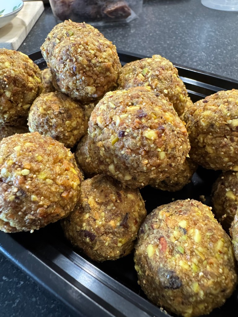 元気になったらやりたかったことが、ラドゥを作ることだった。ラドゥはインド版スノーボールクッキーと言ってもいいだろう。栄養豊富でおいしくて食べる時にちょっとした幸せを届けてくれる、仕事や家事や子育てで忙しくしている人におすすめなヘルシー間食なのでアール。今回の風邪で食生活を見直さないと、と思い知らされたので、ちょっと手間がかかるけれど、頑張ったのだ。