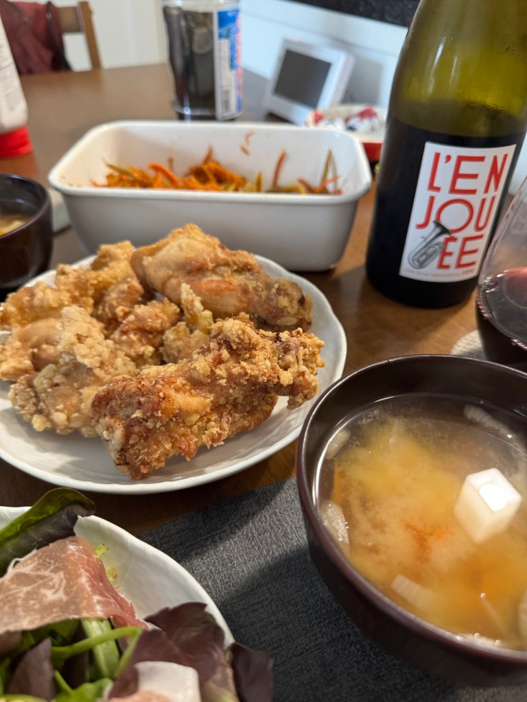 夜は夫の転職祝い、唐揚げで締める。「ああ〜平和だ。こんなに平和な気持ちになったのいつぶりだろう」と夫。いや2日前な、ブログに書いたろと思いながら、そのまま気持ちの良いままにしておいた。