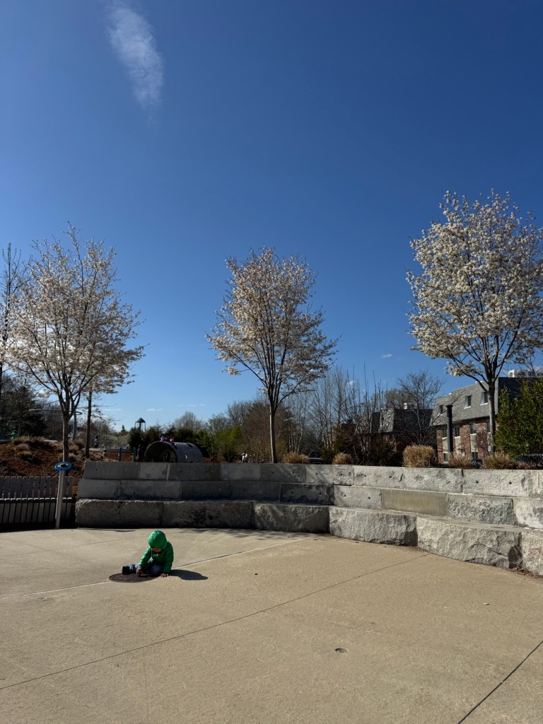 ここ最近、気がついたら公園にいる。冬の間、あれだけ恋しかった公園なのに、ちょっと苦痛になっている。1日のうち午前と午後、それぞれ1回は公園(外)に行かないと息子の体動かしたい欲が満たされない。サボって家の中にいると夜、寝るはずの時間にベットの中で動きまわり、自分に返ってくるのだ。というわけで、わたしは来る日も来る日も歯を食いしばりながらストローラーまたは車を公園に走らせる。